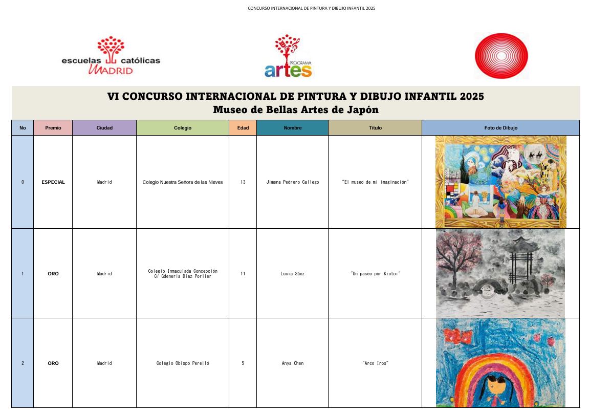 - Hemos sido galardonados en la VI edición del Concurso Internacional de Pintura y Dibujo Infantil 2025, organizado en colaboración con la Fundación Arte y Cultura MOA de Japón, con medalla de plata para CM y medalla de bronce para Lp, ambos alumnos de 1º de la ESO ¡Estamos de enhorabuena! 🎉 Nuestros estudiantes de 1º de la ESO, CM y LP, han sido galardonados en la VI edición del Concurso Internacional de Pintura y Dibujo
